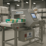 Metalldetektoren erkennen ferromagnetische Metalle, Nichteisenmetalle und Edelstahl. Sie eignen sich besonders für unverpackte oder nicht metallisierte Produkte und lassen sich flexibel in Förderlinien integrieren.